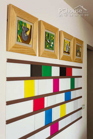 照片墙参考:客厅通往主卧室的通道的墙面,是一个极好的展示空间,展示的内容可以是温馨的全家福,也可以是具有抽象意义的图案组合。