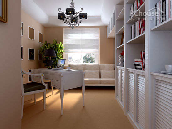 书房参考:把原先的一个卧室改为小书房,包含一套书桌椅、一张沙发最好是伸缩沙发、一排衣柜或者收纳柜,作为一个休闲、学习、收纳的专有空间。