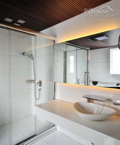 而卫浴设计也是纯白色设计,分为干湿二区,让沐浴时有个相对独立的空间。其他则用白色瓷砖作为映衬。