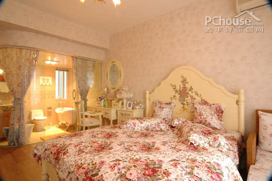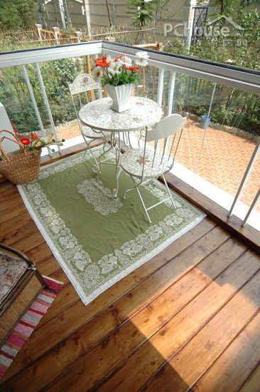 同样沿袭房子的乡村风格主题设计,设计师在不大的空间里设计了飘台。飘台的设计让整个空间明亮起来,视觉上不受光线限制,自然就觉得空间宽敞不少啦!
