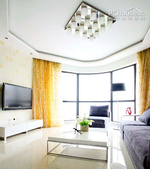 落地玻璃让整个客厅采光度大大增加,挂壁电视能很好地节省空间,又便于打理。总体白色的设计,简洁高贵。周末显示拿着一本书,或坐在沙发上静静地看着电视,简直是一种人生的享受。