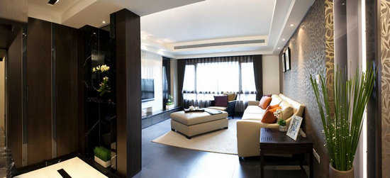 原本毫无遮掩的入口重新设计了一个玄关作为缓冲区,端景置物隔屏为双面柜,并做足了美背与线条式的处理,使整个房子的线条自然流露于空间之中,有了层次的界定。