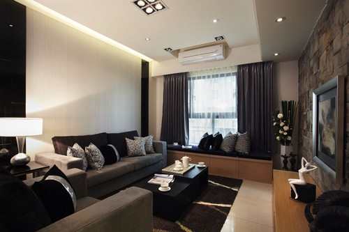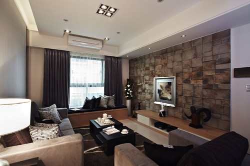 徨筑设计将设计重点放在空间主墙的设计规划上,以色彩、形体多变的石材设计客厅电视墙。