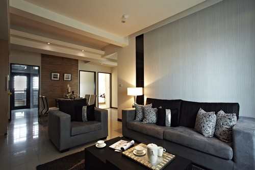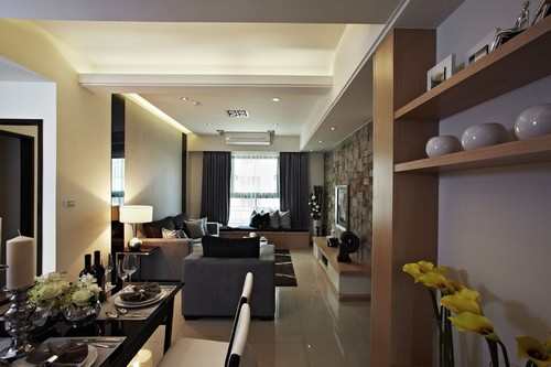 省钱装潢的诀窍,林洋设计师表示有三个重点:不动格局、大面主墙、使用壁纸。不动格局已经省去一大半的装潢费,但又不希望空间感狭隘不舒适,设计师先在客厅窗边规划卧榻,不仅增加客厅的使用弹性,更可藉由卧榻的线条,延伸从餐厅望向客厅的视觉长度。