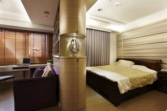 响应屋主需求,以双面柜将主卧房划分为二,并用秋香木营造屋主喜爱的温馨舒适感。