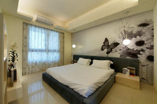 “采取风化梧桐木的细腻铺排,打造自在写意的人文幽境空间”利用大图输出的传神表现,巧妙引景入室,透过材质图像的延续与转折,巧妙修饰孩房片于无形之间,藉由大尺度下的茶镜安排,成功化解廊道原先的窒碍压迫,同样采取大图输出作为底部端景,形塑匠心独运的闲适逸趣,主卧电视墙采用汉白玉与木作的合谐共构,以半高型式的矮墙配置,界定出清楚明确的机能分野,而层次分明的天花造型板,更是营造出向上延伸的绝佳视感体验。