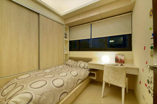 利用大图输出的传神表现,巧妙引景入室,透过材质图像的延续与转折,巧妙修饰孩房门片于无形之间。