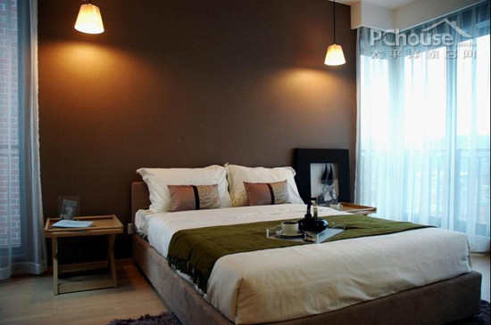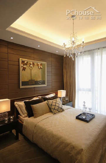 主卧设计:应业主要求,在不影响大局几实用性的基础上,尽最大可能的充分利用空间,将老人房的卫生间改为次卫,将原建筑次卫改为主卫,原建筑主卫改为步入式衣帽间