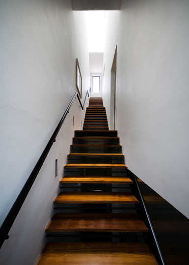 起居室位于二楼,从立面可以看到起居空间。这一设计不仅满足了对私密性的需求,同时也为街景带来了很多的特色。作为纽约人,房主经常回忆起在纽约住过的房屋。这一思乡情绪让设计者想到把外立面改造成红砖结构,让人立即联想到纽约城里的排屋风格。