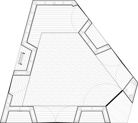 小屋有一个设置在深处的开口和凹进,叠起通向屋顶露台的阶梯。