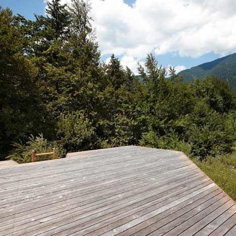 在德国南部山区有一套木质装饰性小屋,这栋小屋由柏林工作室设计,带有反射效果的百叶窗。