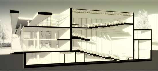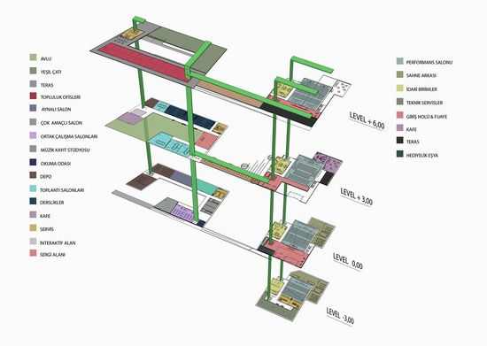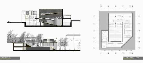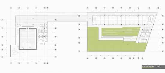 正如在总体规划中的校园,空间的主要使用如会议大厅一般位于校园中面对主要广场的角落。而像教室、工作室、学生交流室则位于校园的绿化区域。