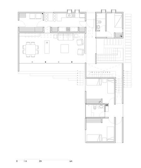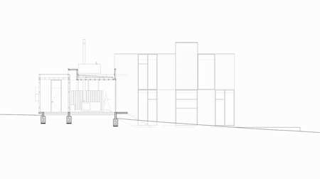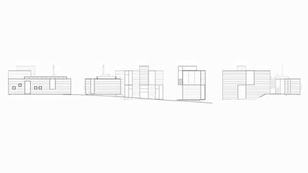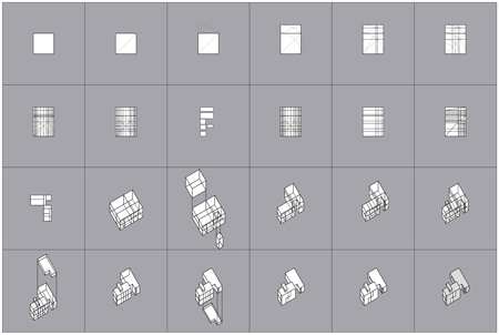 并列的线路,沿房子的线条形成挤压。然后通过一个并列象限产生的一系列外观变化使他们不重叠。这些线条总是与构造的选择相关,使房子产生新的空位。