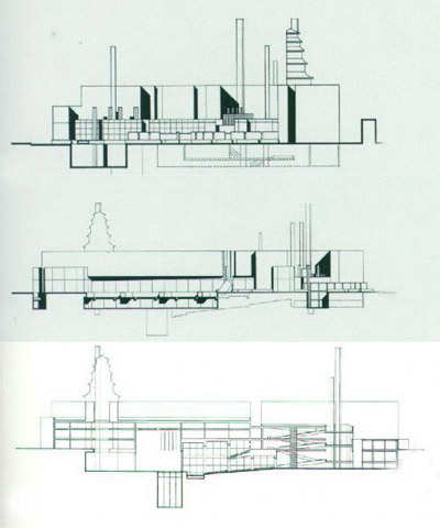 构造性采用着super structure方式,第一栋办公楼,第二栋办公楼都,关于1栋在8个超级柱子和每10层的超级房梁支撑建筑物全部,确保着19.2m墩距的无柱空间。super structure方式,由于同样的丹下的设计的富士电视台约翰总社等也被采用。