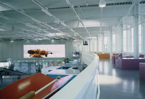 这个现代化博物馆的设计,展示了多尼尔公司的发展轨迹和产品生产过程。 在一个机库的形式,博物馆的计划,象征性地代表了地面跑道关闭从腓特烈港机场。该架构符合一个引人入胜的展览方式两个非常不同的要求为:一方面,在机库提供了大量的原机所需的空间。