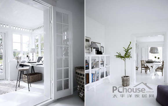 主要内饰的颜色为白色。包括木制餐桌,各种橱柜,餐具,灯具,椅子,整体外观都是一个完美组合。 这所房子甚至刊登在英国主要装饰杂志《艾莉》2010年3月。
