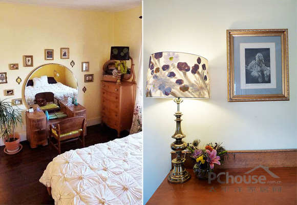 最好的忠告:不要害怕使用一些你自己喜欢的装饰品。你可以看到我们的“金色卧室”墙面上有十年前的黄金框架和小明信片。漂亮的奶油黄墙画,使得我们的卧室充满温馨和温暖。黄铜灯是我在一家古董店淘到的。客房装饰品是在墨西哥旅游时搜集的旅游纪念品,还有一些来自拉丁美洲的画。这是一个我们用心装饰出来的空间里面有我们的快乐回忆和所有情感寄托。