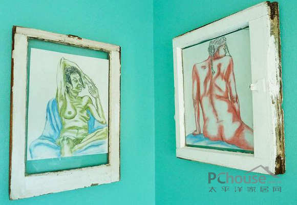 整个房子,创意环保元素出现在最意想不到的地方:墙壁上。七彩古巴旧海报热热闹闹,贴在油漆好了的窗户上。在客厅沙发之间有比较宽的过道,就算你在过道跑也不至于撞到沙发上。