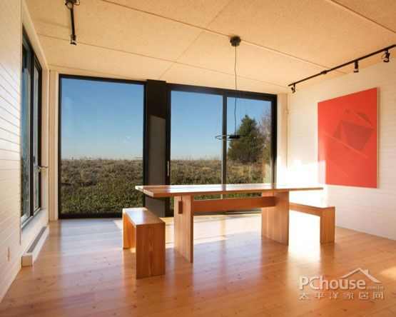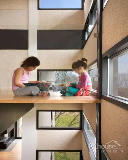 侧面装有一排排的条纹水平窗户和大型的百叶窗,这样就可以减弱太阳的强烈辐射,还能从不同角度欣赏到外面的景色。到了夏天,折叠式的外观设计能够防止烈日的暴晒。冬季,室内又会充满和煦的阳光。既不需要空调又不必安装加热器,可谓冬暖夏凉啊!