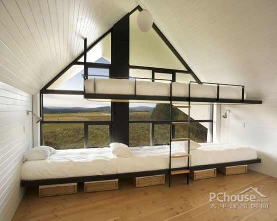 这座房子专门为两个家庭而设计,主要用于举办庆典和度假。房子所处的地势并不平坦,但这样恰好可以将四处的自然美景纳入眼底。宽敞的三角墙为所有的客人创造了一个休憩所,室内设有一系列的卧室和独特的睡眠区。