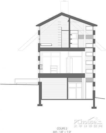 加拿大建筑公司YH2设计了一所名叫La Cornette的乡村房子,该房位于加拿大魁北克。房子坐落于一座小山的斜坡上,四面朝向田园风景。高耸的屋顶好像一顶修女帽子,设计师仿效传统的老式魁北克房子来设计,室内显得非常宽敞,可以容纳一个大家庭和他们的亲戚。