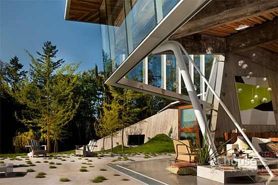 这座家庭住宅位于加拿大西海岸宽阔的乡村土地上,周边是大片的原始森林和田地。