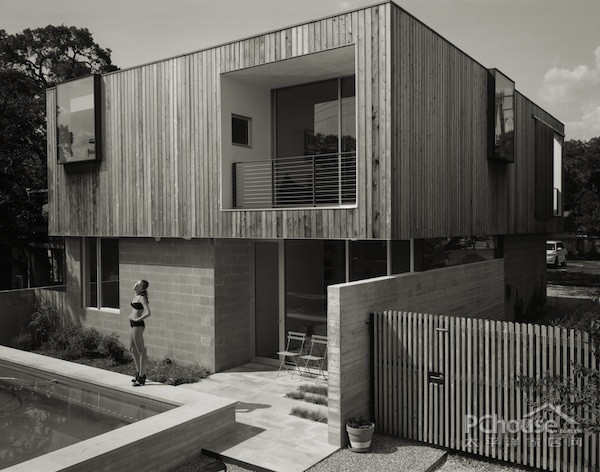 房子本位于其同名包尔丁附近一个街区,这里住着许多艺术家和音乐家,他们在奥斯汀市中心都很受欢迎。“这对我来说也是非常的重要,为什么我要从曼哈顿来,”Sam Shah说。“我不想生活在车水马龙的的繁忙街道水泥墙搭建的带游泳池的私人庭院里。打开房门看到只是地板到天花板的玻璃。”