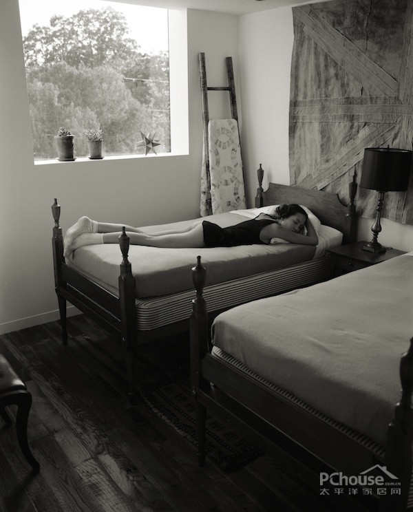 木材和玻璃的合理使用是室内和室外空间的视线变得模糊,在外墙和室内设计里我们仅采用了混凝土和木材。楼下层基本是混凝土,而楼上则是采用密苏里州一个谷仓回收回来的原木地板。