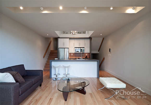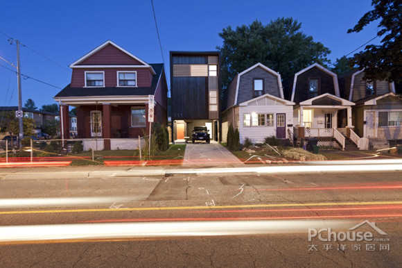 只有16英尺宽的建筑使我立即就记起荷兰相似的设计,荷兰那些建筑狭小的前庭是正常标准而空间却保持在最低点。建筑片面图的巧妙安排明确定义了建筑,并且在成功的涵盖业主生活各个方面的同时,遵从建筑师的审美观和当地的规划条例。