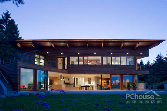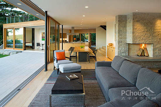 与此同时,别墅的透明玻璃连接室内与室外,制造了一种无痕迹的空间体验。