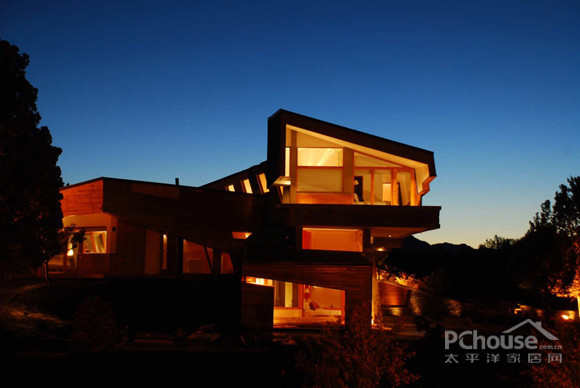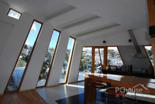这里的一切都为房屋的任何一个部分提供了壮观的景致。这里在使用上有一种毗邻的十分温暖的材料——在私人领域木材得到充分的利用,而在公共区域则用混凝土修筑。
