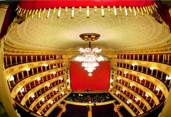 歌剧院的第一层是排成一圈的包厢,它与四层普通包厢和顶层楼座围成了一个马蹄形的听众席,使歌剧院前排座位的听众能享受到理想的音响效果,而马蹄形听众席的中间位置就是皇室包厢。时光流逝,斯卡拉歌剧院几经修容,1807年歌剧院的后台扩展,1830年歌剧院内部在桑奎利科的主持下重新装修,1838年舞台被更新。1875年斯卡拉歌剧院从周围的建筑中脱颖而出,1921年摆脱了长期以来由少数人独占包厢的特权制度。