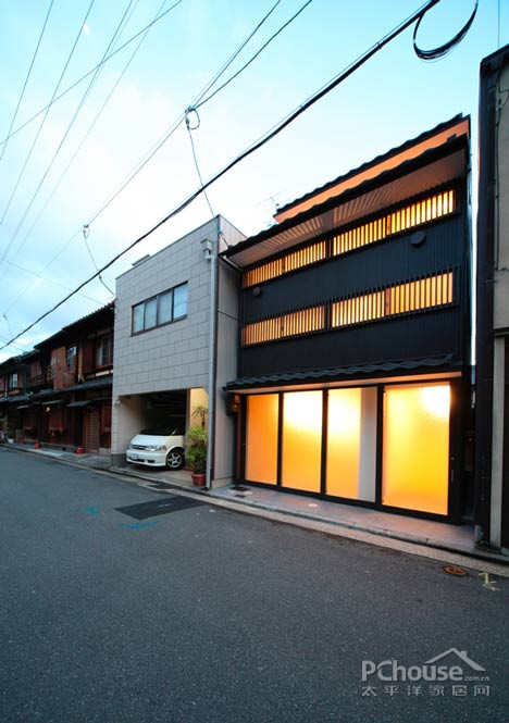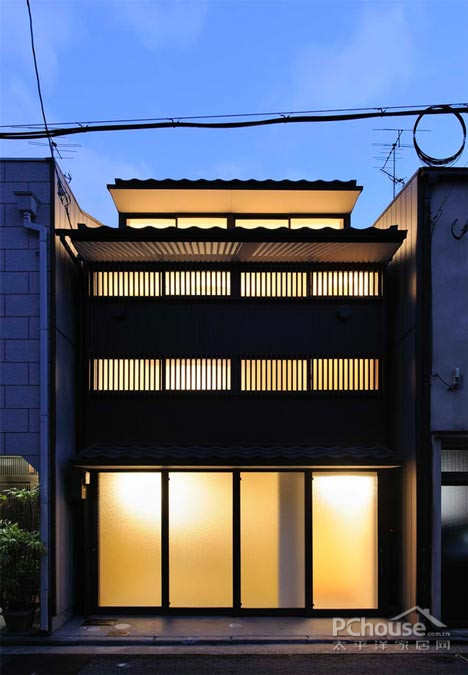 这间坐落在日本京都的房子的内部空间是由这些木制面板来划分的,而其钢架结构本身已经提供了一个开放的室内空间,那里所有的层都能在视觉上联系在一起。
