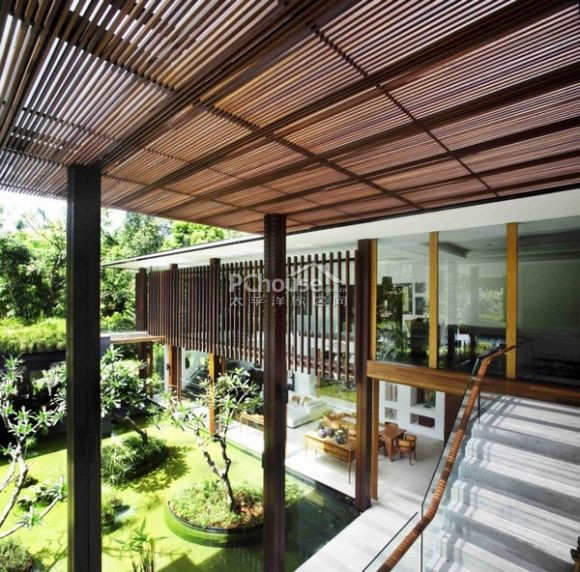 日光别墅是一座漂亮的绿色建筑,由Guz建筑师事务所设计,位于新加坡。屋主在设计中添加了大量细节,将他的部分艺术和雕塑藏品布置在别墅中,提升了美感和艺术氛围。