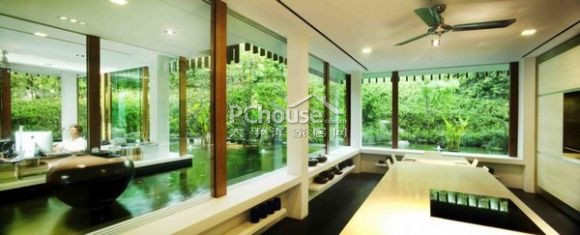 【太平洋家居网 设计频道】绿色的水木环绕,亭台建于水中央,满眼的湖蓝、草绿和原木色,日光别墅异常美丽。