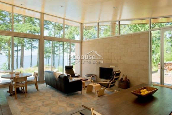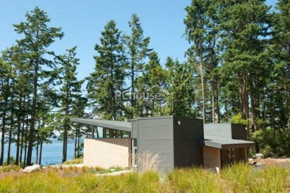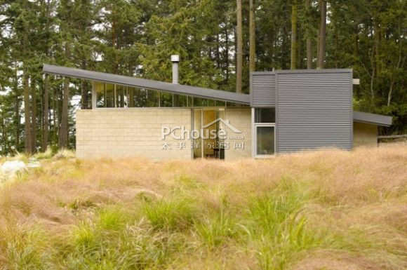 这座1300英尺的小屋由Stuart Silk建筑师事务所设计,位于华盛顿洛佩兹岛。包括一间客厅、一间厨房和两间带浴室的卧室。室内和台阶设计都采用了板块层叠的方式,易于构建且节省原材料。