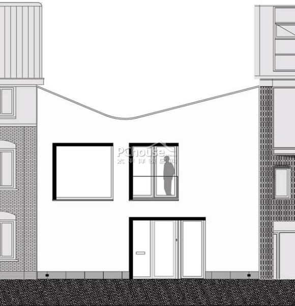 这座镶嵌在街道一侧楼房之间的全白色不对称住宅单独看来并不出彩,但得益于它所处的环境——宁静的街区和相邻两侧各有特色的建筑——整体看来非常协调优美。