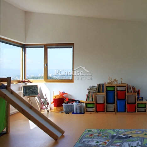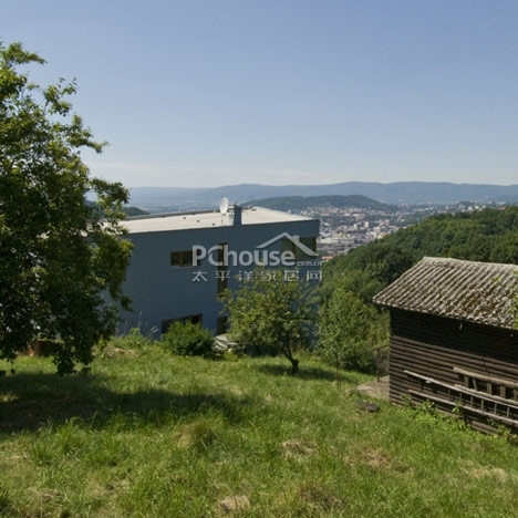 这次我们来到捷克中心山脉自然风景保护区内,在一座陡峭的山坡上坐落了一座两层楼高的住所——灰色的石膏外墙与棕褐色的窗框形成鲜明的色彩对比,十分引人注目。