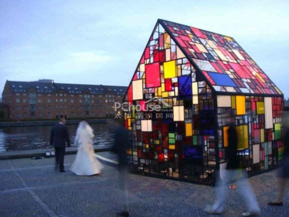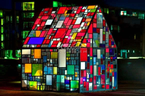 【太平洋家居网 设计频道】这间艺术小屋令人不自觉联想到同样拥有彩绘玻璃的神圣大教堂,在唱诵诗歌时,折射出变幻的光影,拥有惊人的美感。
