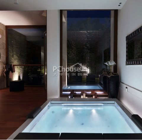 令人惊叹的是室内的这个微型按摩池。迎接你的是一条木质天桥,柔和的灯光和坚硬的石头墙形成鲜明的对比。而室外的小树则营造了相对私密的空间,让你可以安心地享受按摩,完全地放松身心。