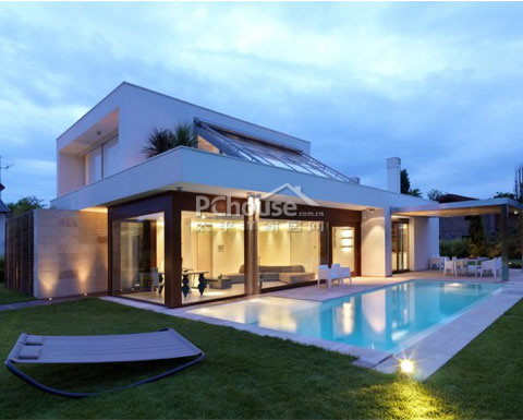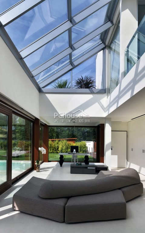 这座意大利风格的现代别墅被灌木丛包围着,与周围的环境隔离开来,营造新的居住环境,晚上还可以坐在客厅透过玻璃天花板欣赏美丽的夜空。
