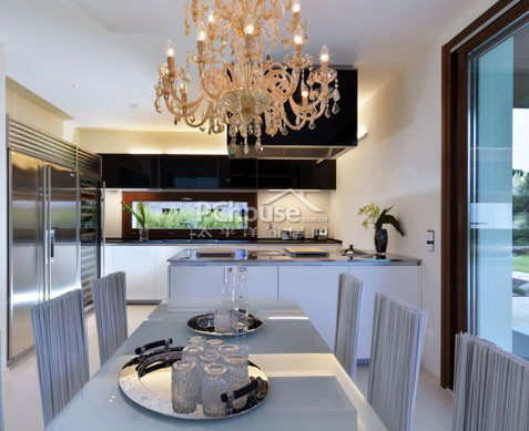 客厅像一个玻璃立方体,落地窗户可以看到室外美丽的景色,令你心情愉悦。厨房和餐厅连成一体,增强了可视空间。家具营造出简约欧式风格,但经过设计师精心安排后显得别致有序。