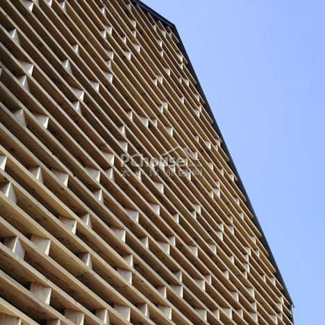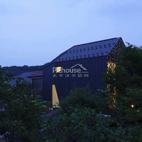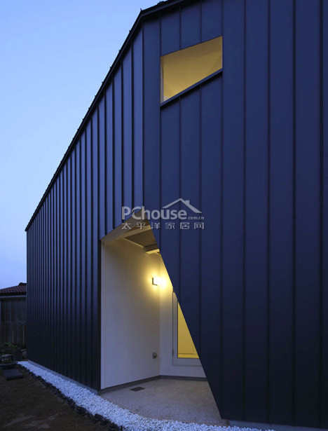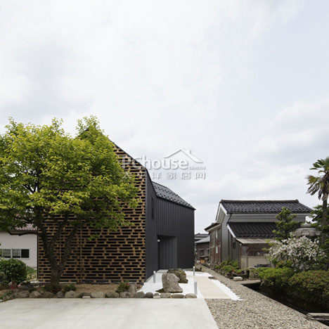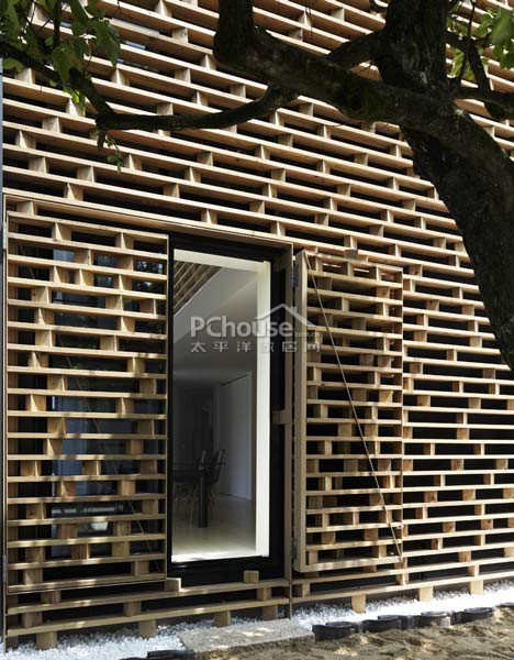 太平洋家居网 设计频道日本建筑事务所AE5设计的这幢房屋,木制网格百叶窗像屏风一般立于房屋外墙。
