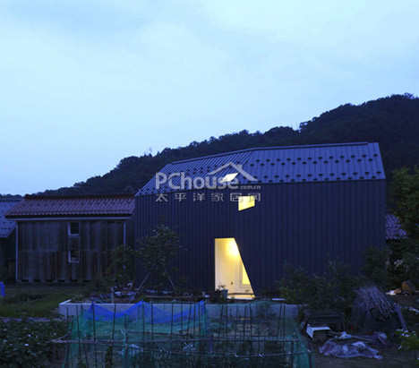 这幢两层的住宅楼,房子中间有个褶皱,将其从中间分成对称的两半。