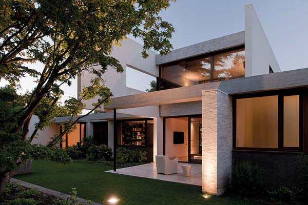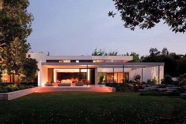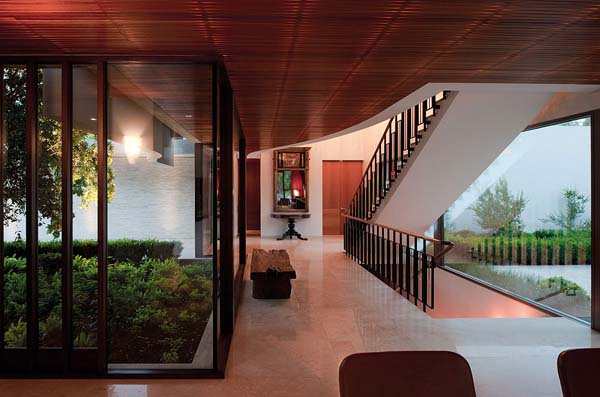 【太平洋家居网 设计频道】这套豪华的别墅被众多树木环绕着,H形的别墅向大家展示了复杂的当代建筑,描绘了现代化的人造住宅和周边自然环境的完美融合。