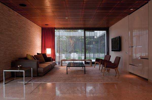 在西面,公共空间经过一个玻璃门通向花园,直接将居住者视线集中到窗外的枫树上。
