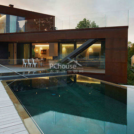 这栋三层楼高的别墅与自身所带的游泳池形成了一道倾斜式的风景。