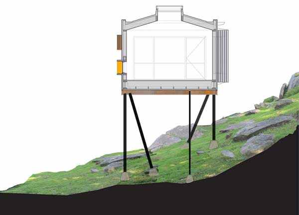 【太平洋家居网 设计频道】设计师对这间小屋进行了大规模的改造,令小屋适应地势不平的山坡。