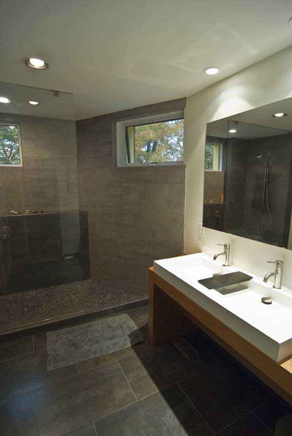 “我们的方法是以定性回应固定的地势,包括屋子周围的树木,变色的季节树叶以及和居住者的日常生活固有特点来明确私人和公共空间的衔接。”设计师如是说。