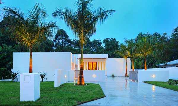这套个性别墅屡获殊荣,位于佛罗里达州的萨拉索塔,豪华住宅的两侧种植着大棕榈树。